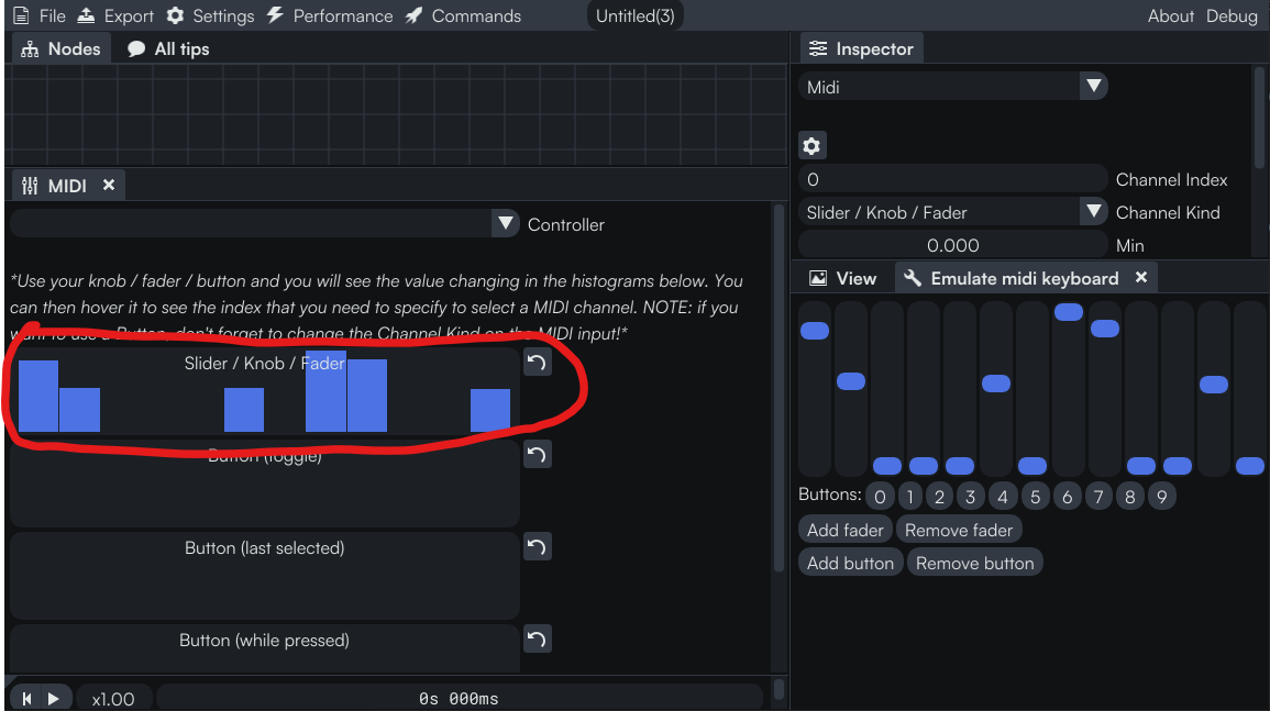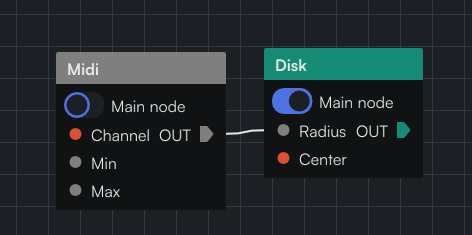 - Plug a MIDI node into the pin of whichever parameter you want to control: